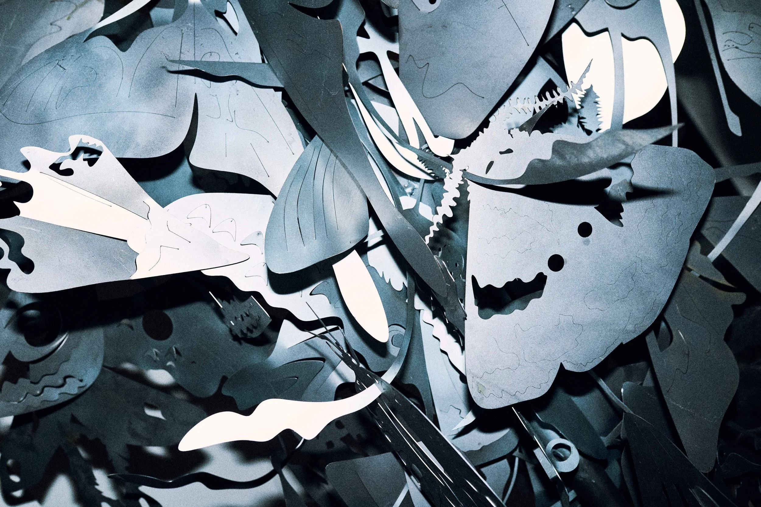 Her installation Nuances of the Night weaves together metal, light, and salt: metal, chthonic and drawn from the depths of the earth, gives the moth a physical presence; light traces its passage and reveals its transformation; salt recalls ancient rituals, preservation, and tears — crystallizing the link between longing and memory.